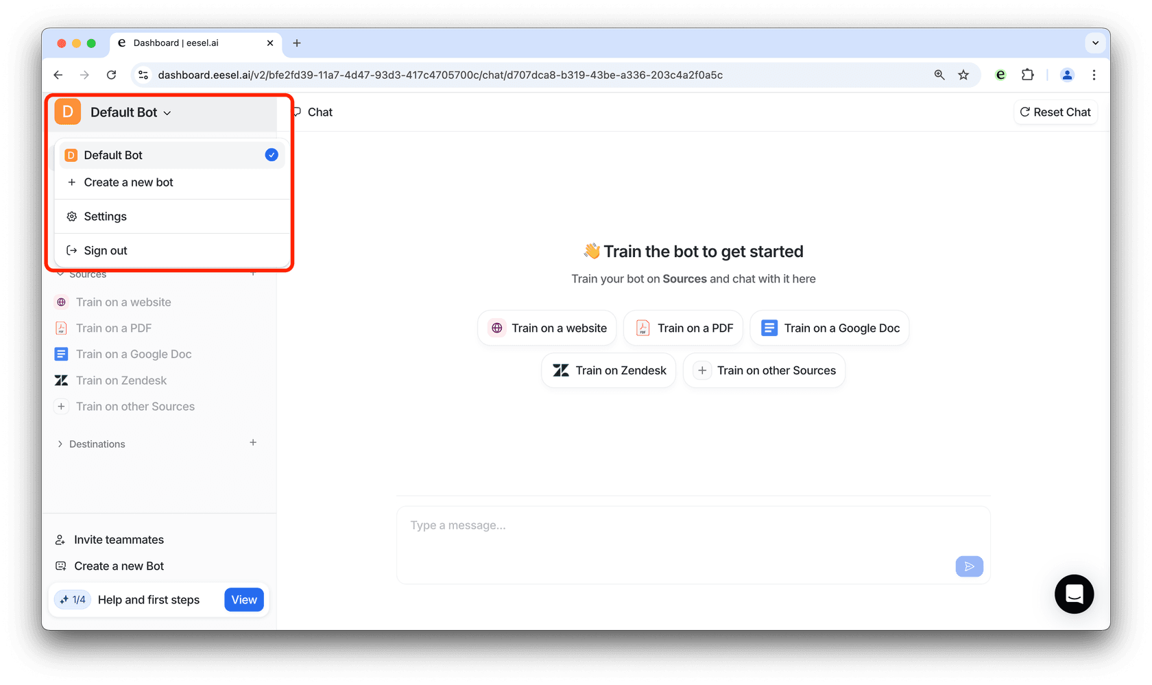 2. At the top left select the bot you’d like to use as your AI agent.