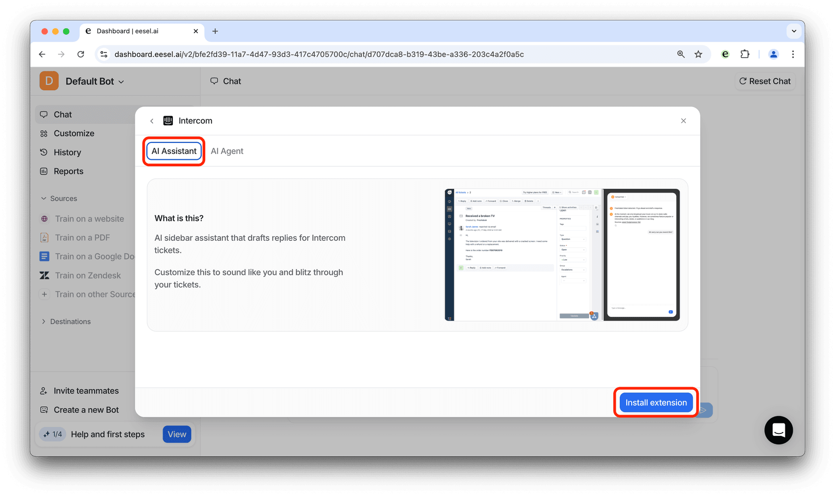 Here’s a couple of simple steps to get your eesel AI copilot set up for Intercom: