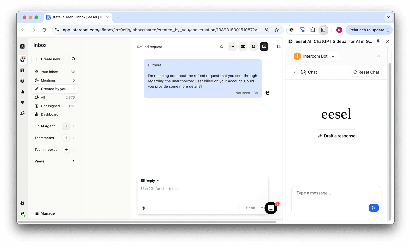 How to use eesel AI as a copilot in Intercom