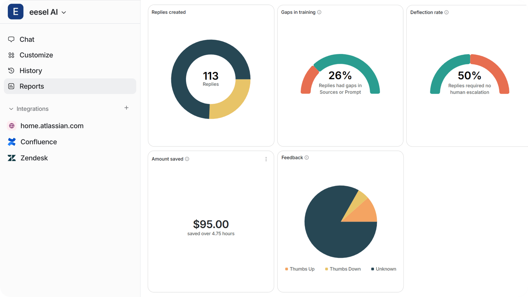 Pro tip: Use analytics tools to identify knowledge gaps. eesel AI provides detailed insights about topics customers frequently search for but can't find, helping you prioritize content creation effectively.
