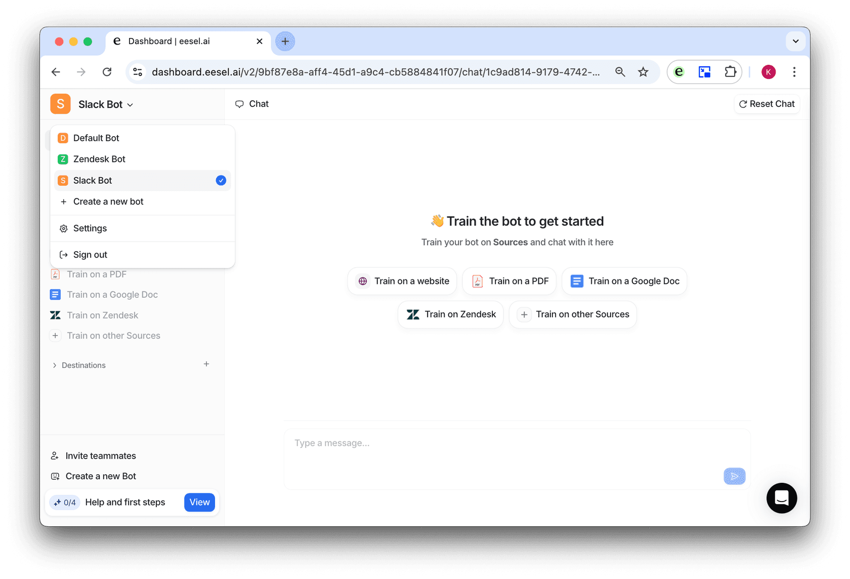 - Navigate to the bot you’d like to train.