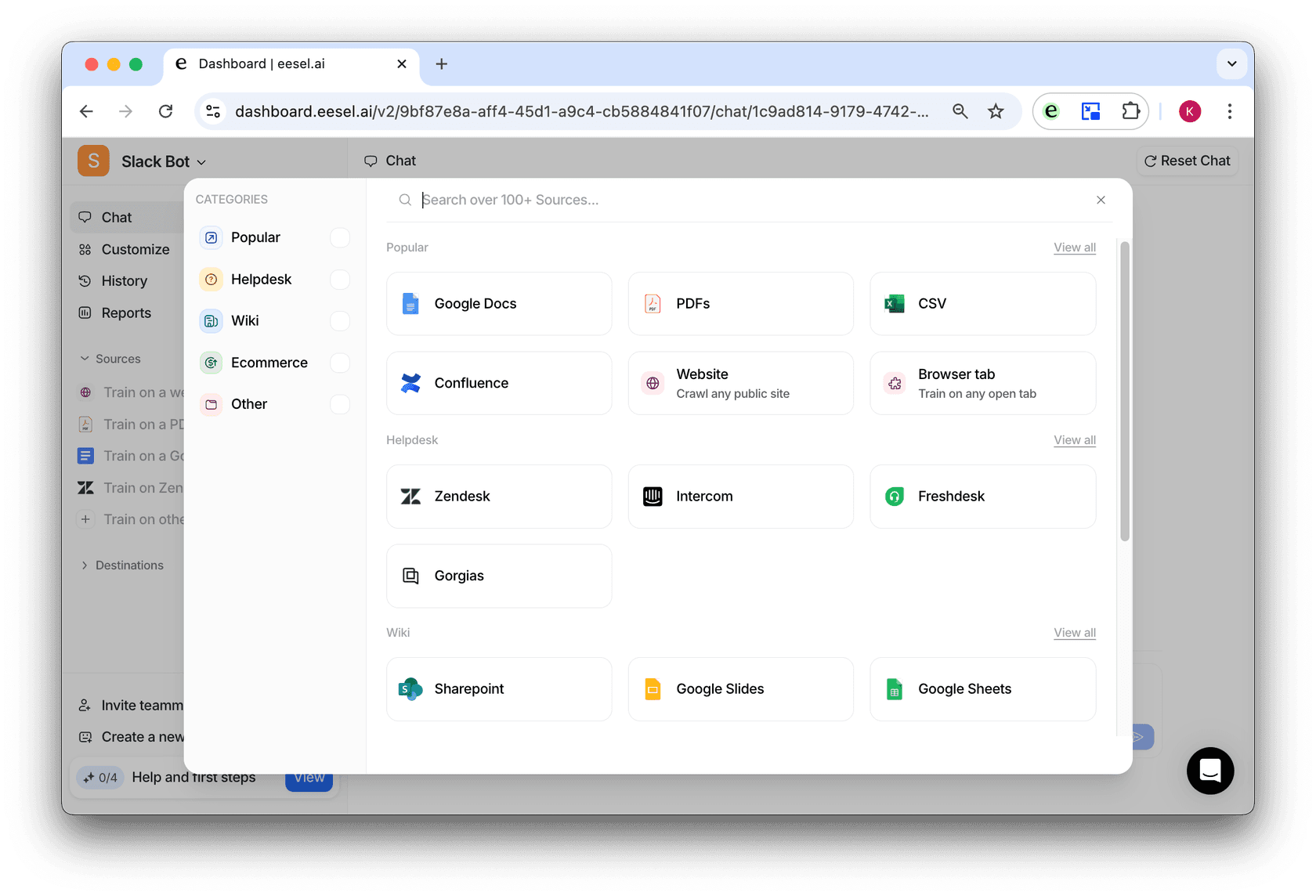 Your documentation shouldn’t all have to be in one location. With eesel AI, you can connect all your platforms. You can use your company documentation to help your internal teams find instant answers to any question, search for documents across your knowledge platforms, and remove the guesswork.