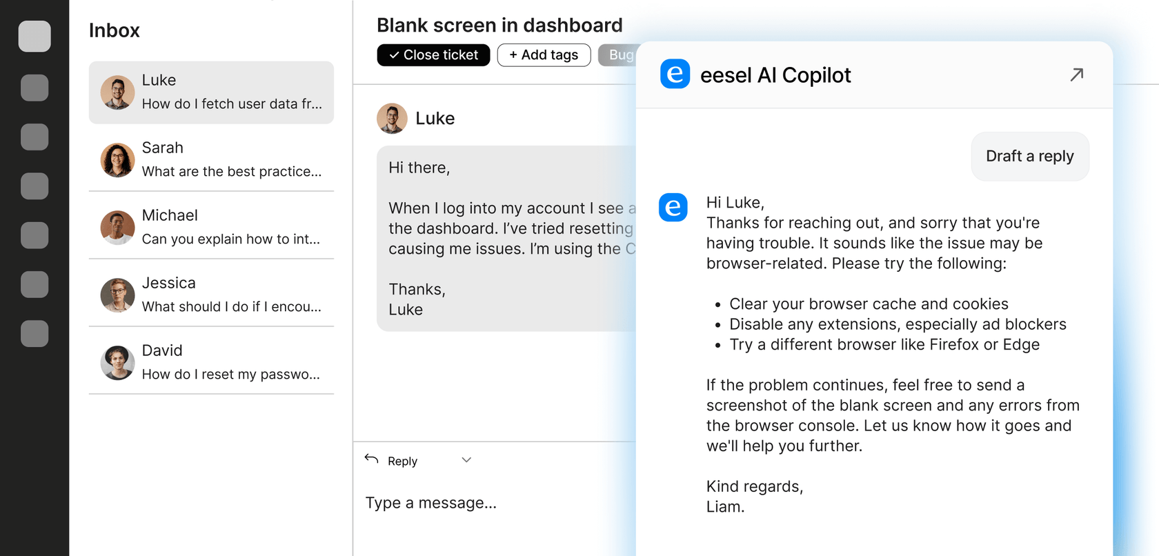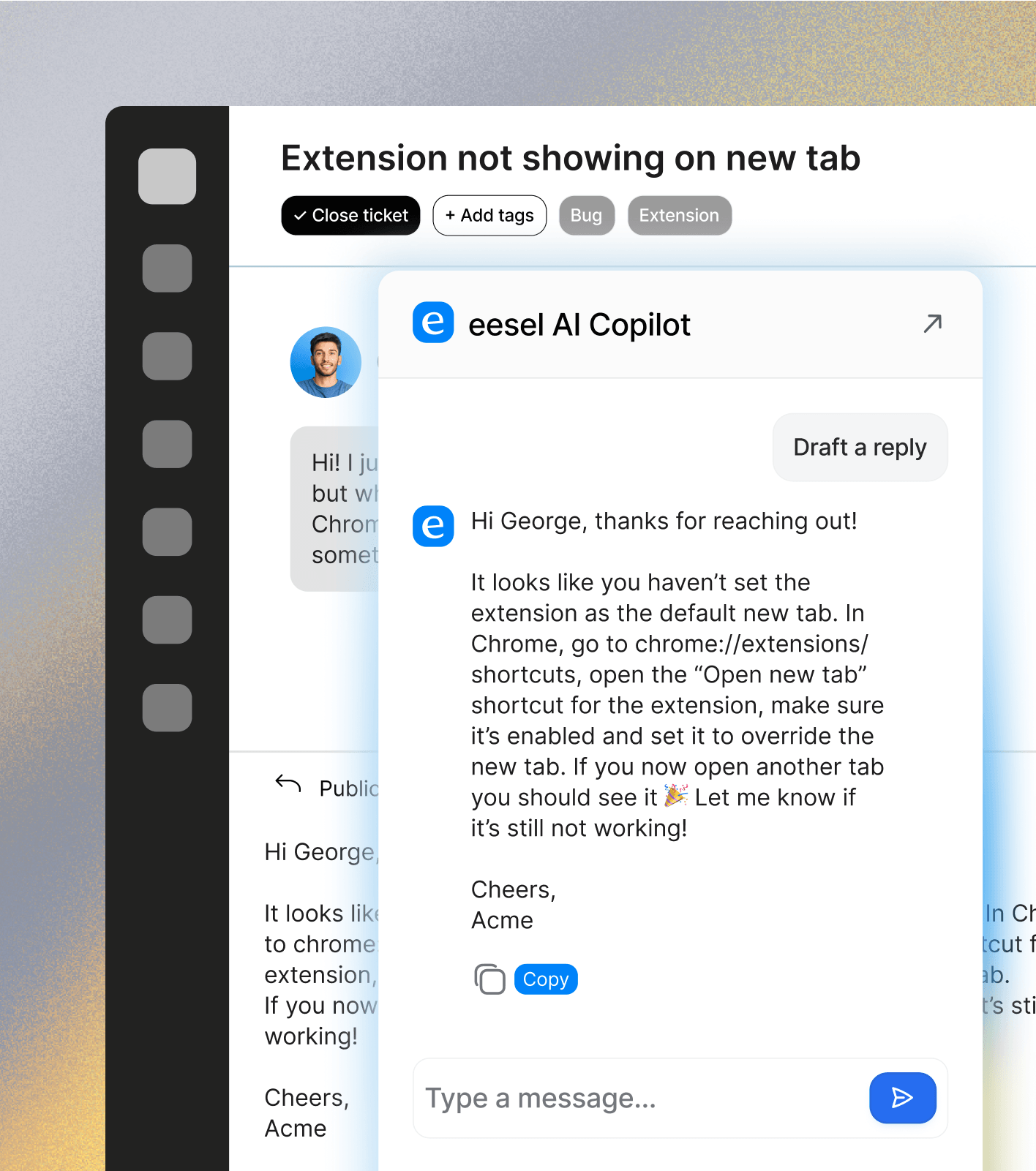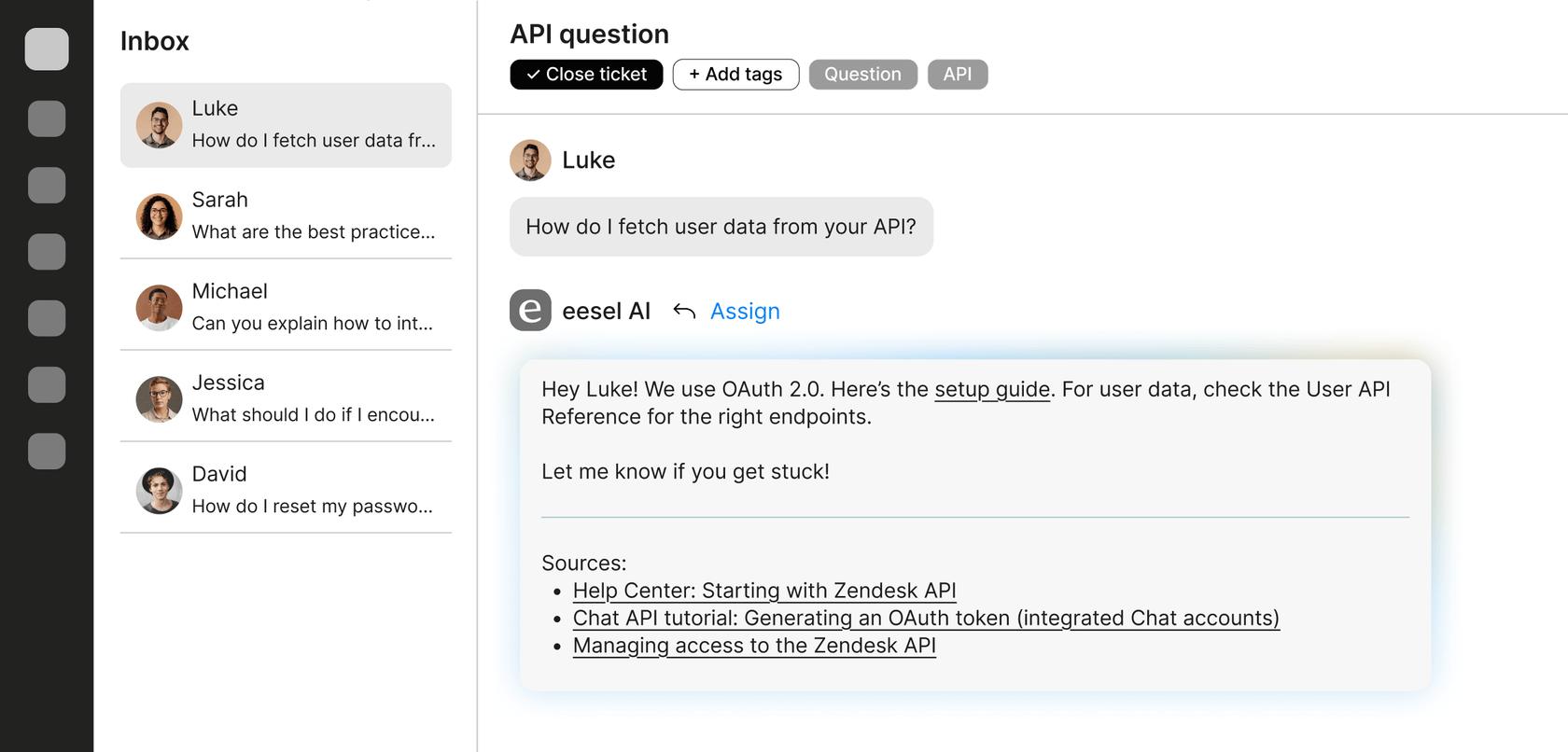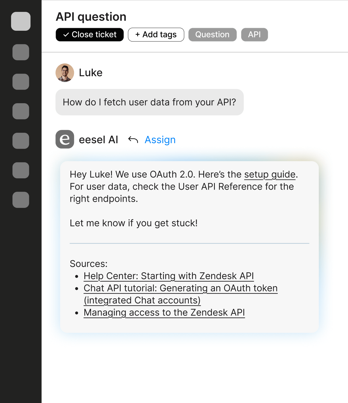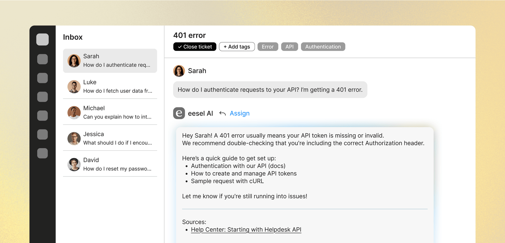 Durch die Hinzufügung von eesel zu Ihrem Support-Workflow nutzen Sie das Beste, was KI in Bezug auf Automatisierung und Unterstützung zu bieten hat.