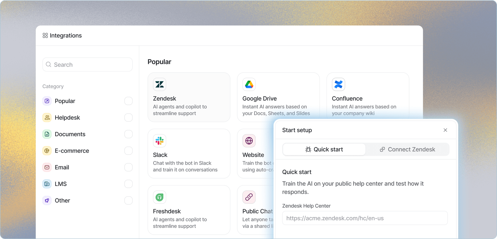 Von Confluence und Google Docs bis hin zu PDFs und Notion-Seiten können Sie die KI mit beliebigen Inhalten trainieren.
