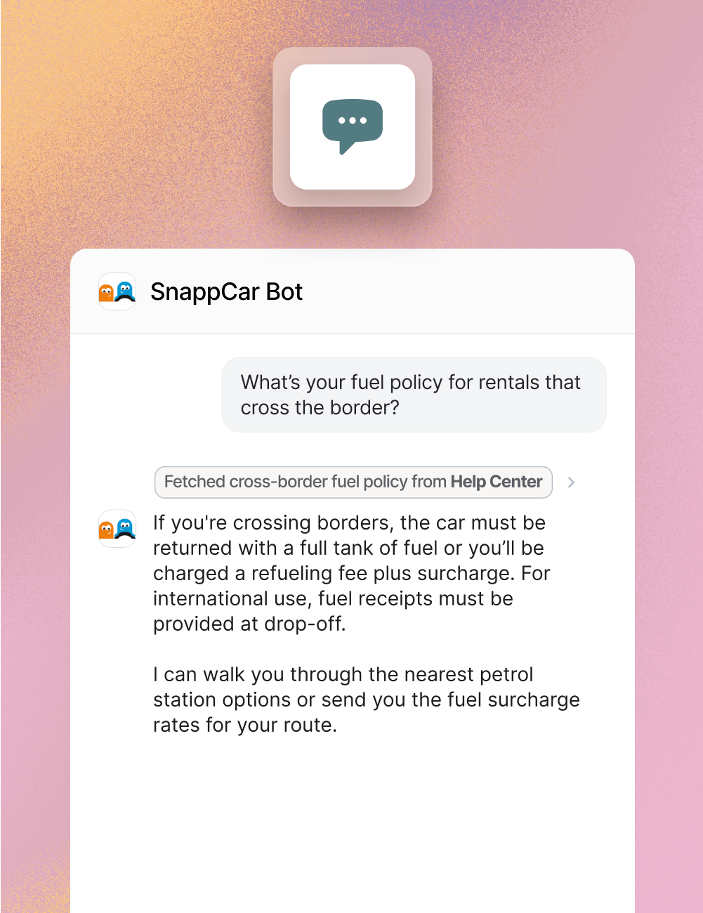 Entrena instantáneamente sobre tus artículos del centro de ayuda y sincronízalos para actualizaciones en tiempo real.