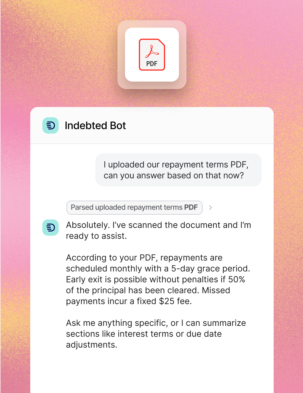 Sube PDFs y observa cómo el bot puede responder basado en tu contenido.