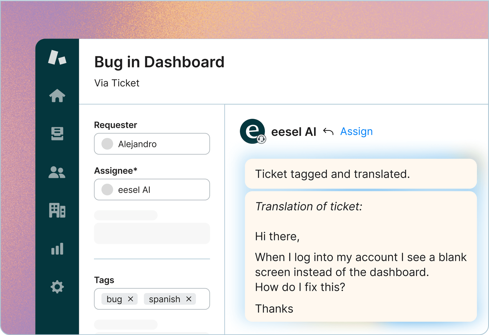 L'IA peut traiter tous les tickets et conversations, et les diriger, modifier ou étiqueter selon vos flux de travail.