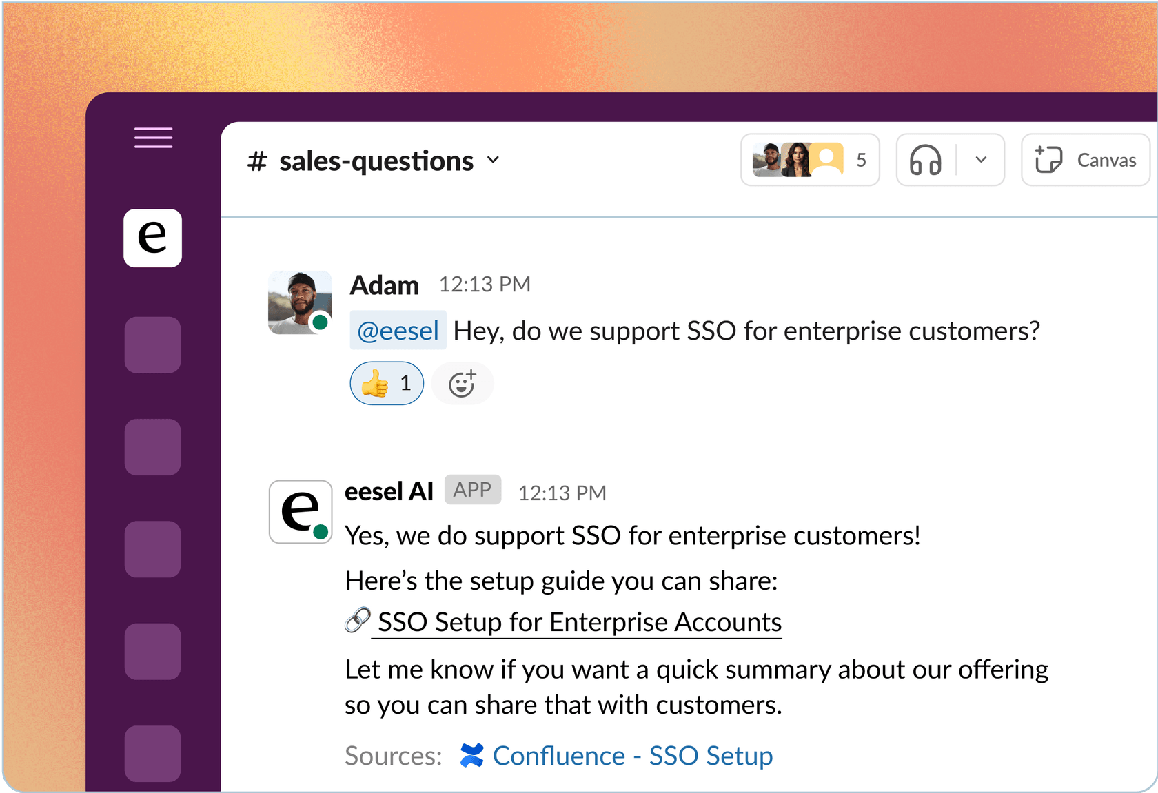 "Dans une entreprise où les transactions doivent être traitées le plus rapidement possible, chaque seconde compte. Avec eesel, nous pouvons trouver des réponses spécifiques aux questions extrêmement rapidement. Nous pouvons intégrer de nouveaux employés très rapidement et avons constaté jusqu'à 80 % d'économies de temps."