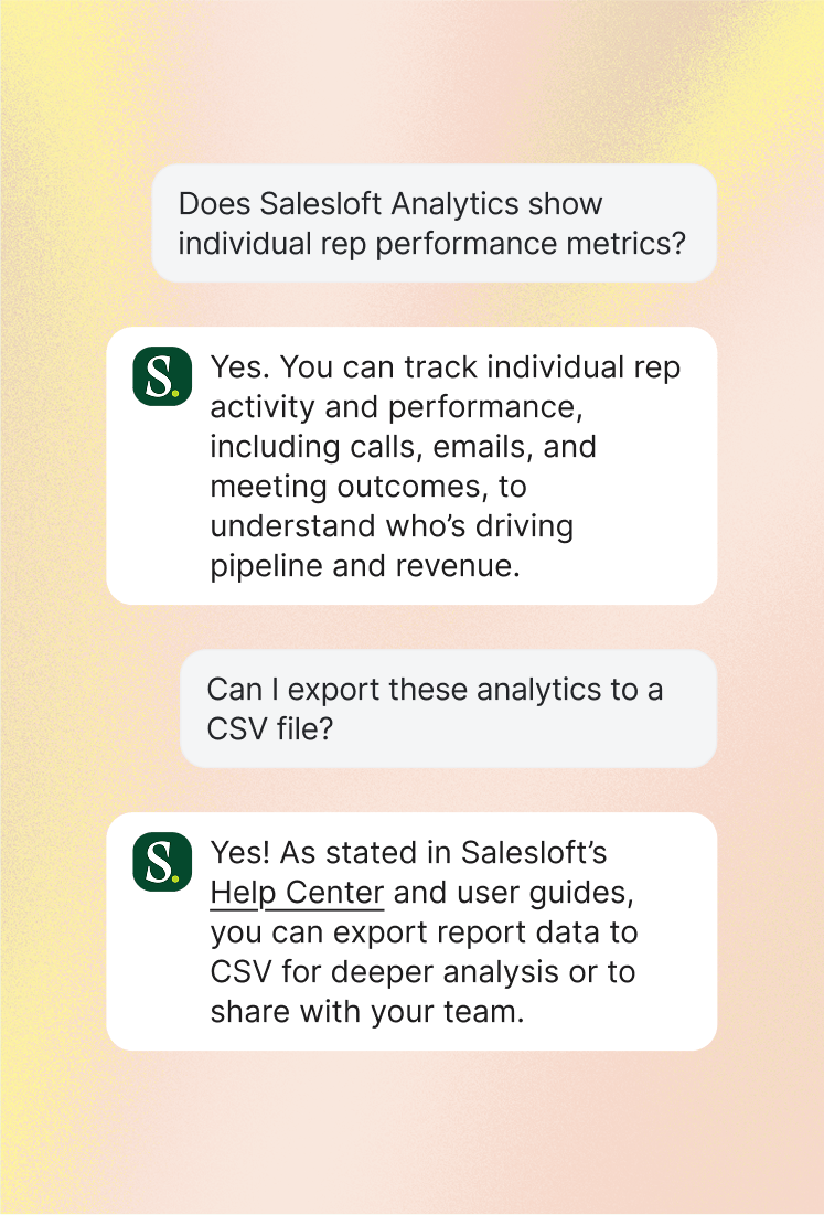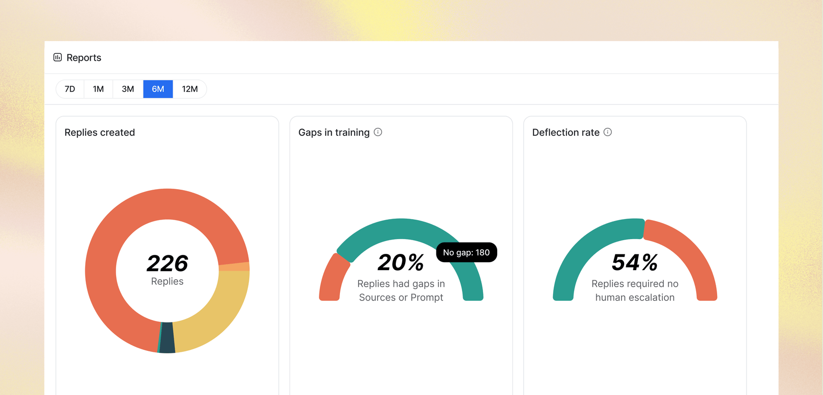 Rapports prêts à l’emploi pour mesurer la performance de vos bots IA. Utilisez ces informations pour aider à informer les futures formations et personnalisations.