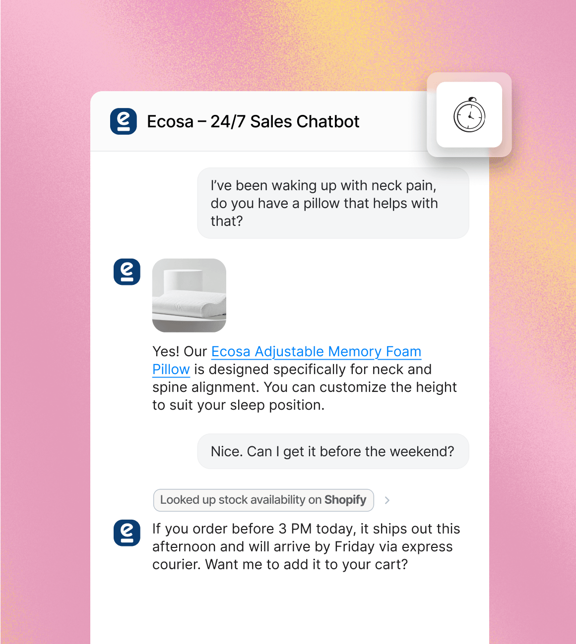 Connectez l'IA à votre catalogue Shopify en direct pour des informations produit en temps réel.
