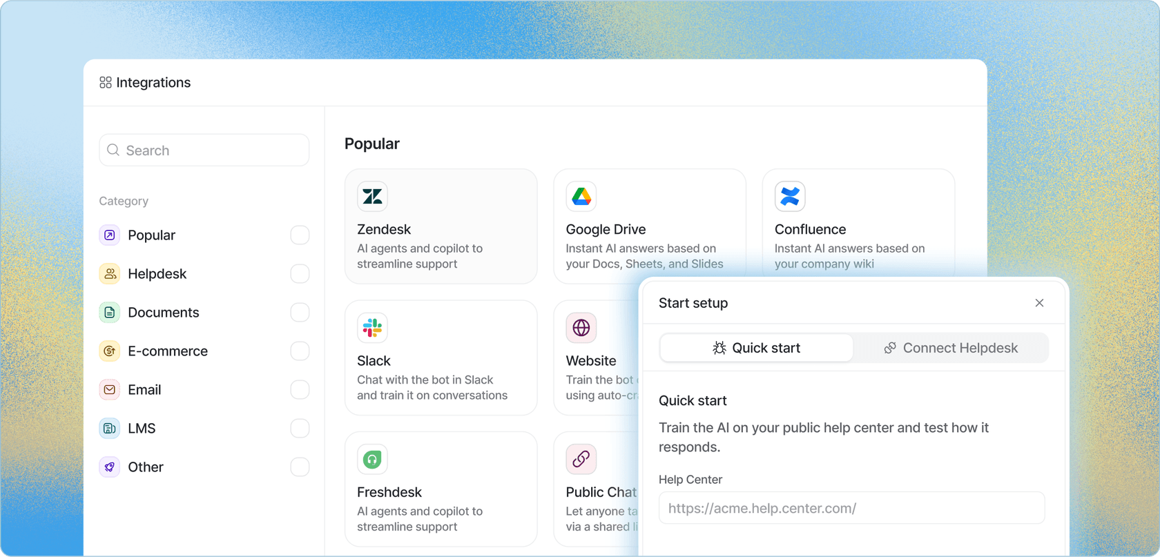 From Jira to Intercom to Freshdesk to Slack, you can easily train AI bots and agents on various sources and incorporate them in different workflows across different apps.