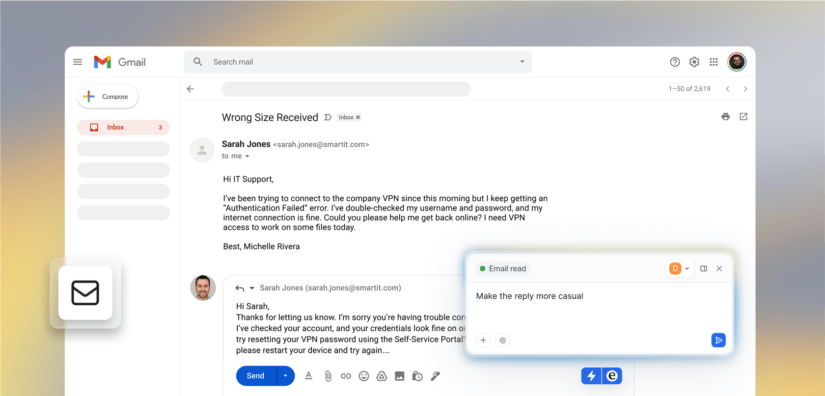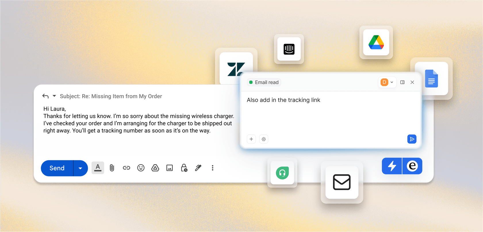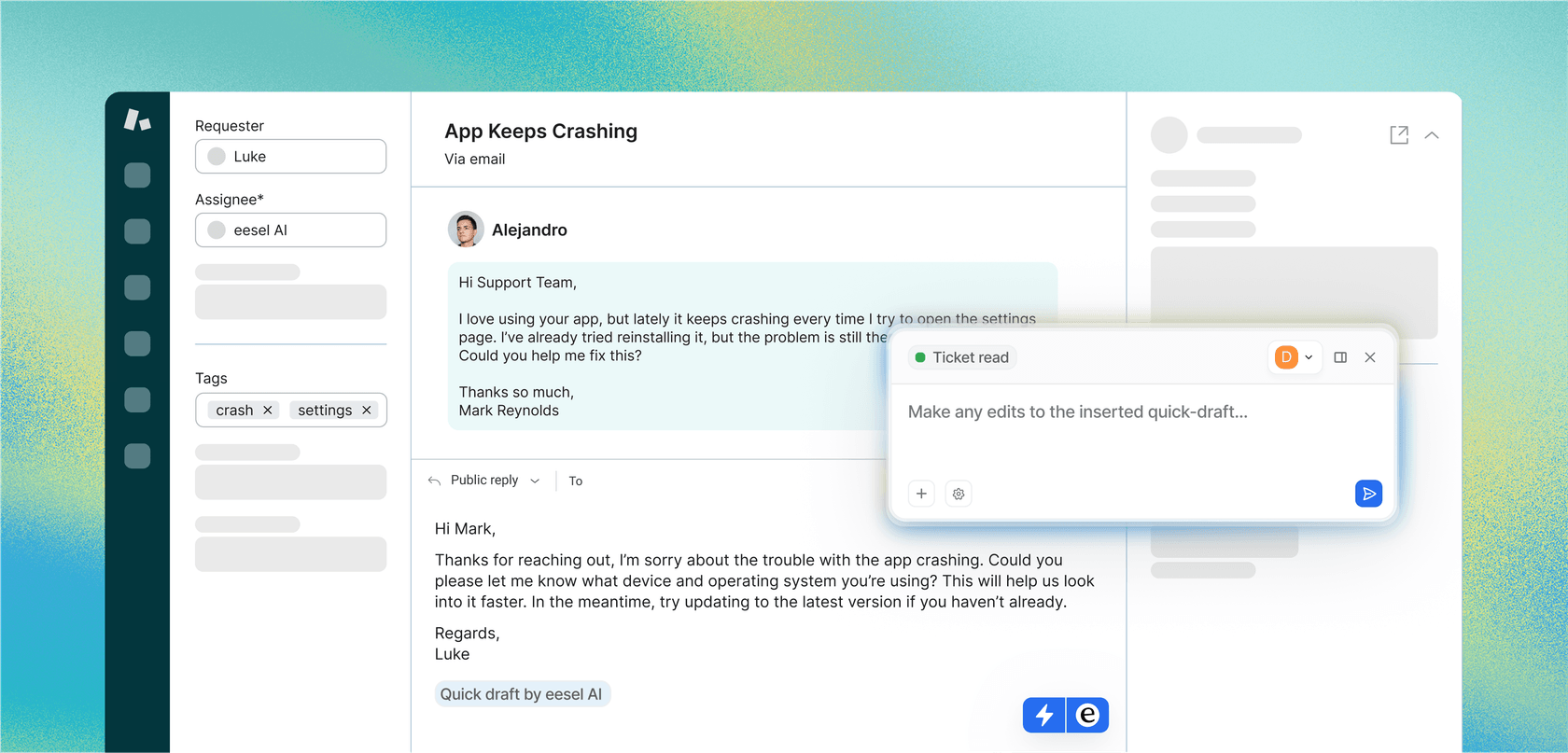AI assistant to help your team draft emails and replies support tickets faster than ever.