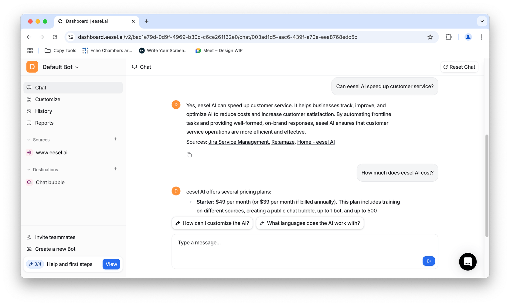 2. Give the AI a test: Check its responses and make sure they’re how you’d expect. You can always optimize it with a few choice settings.