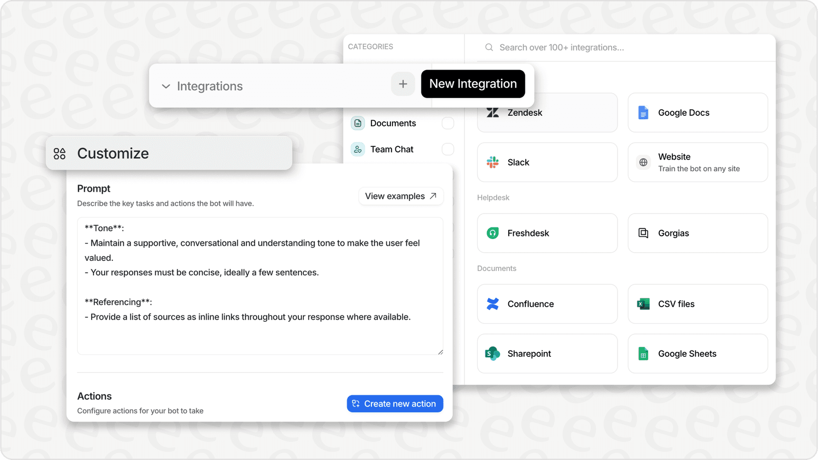 eesel AI's extensive integration capabilities allow teams to train their AI on various knowledge sources including Confluence, Google Docs, internal wikis, and even past tickets/emails. We give you the ability to create specialized bots that can be individually customized. By making multiple bots that specialize in different support scenarios, you can create highly customized workflows.