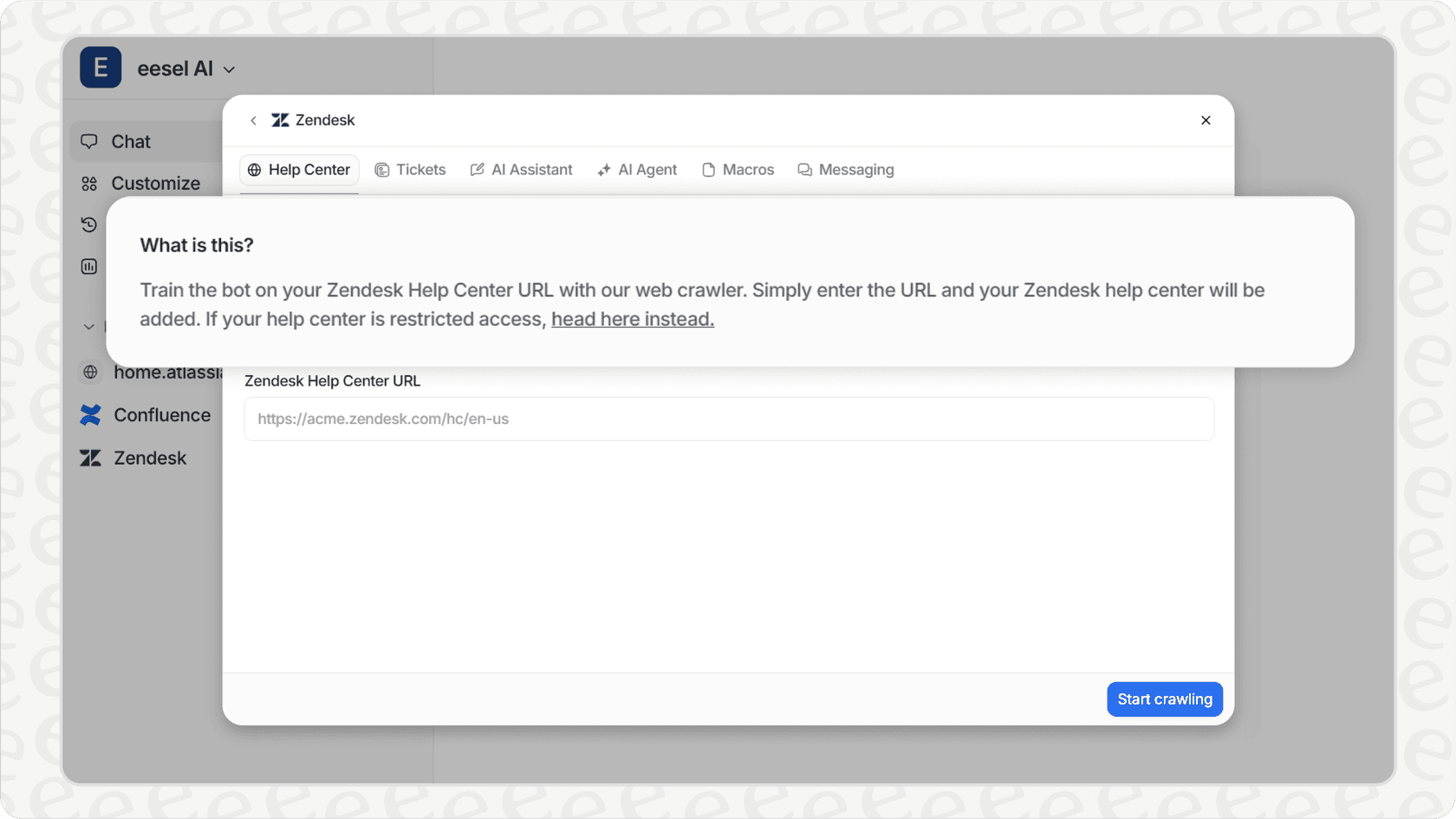 Pro Tip: Teaching the AI using your past tickets is super helpful. It's really important for helping the AI understand the actual issues customers run into and how your team has solved them correctly before. eesel AI specifically looks at past tickets to build knowledge that trains your AI bot.