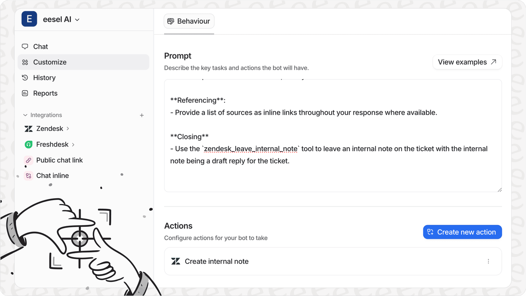 Give your AI a personality: Take some time to adjust the AI's tone and language to match your brand's voice. A bot that sounds like a natural part of your team makes for a smoother and more positive customer experience. eesel AI offers lots of ways to customize the tone and specific phrases it uses, letting you really perfect its personality.