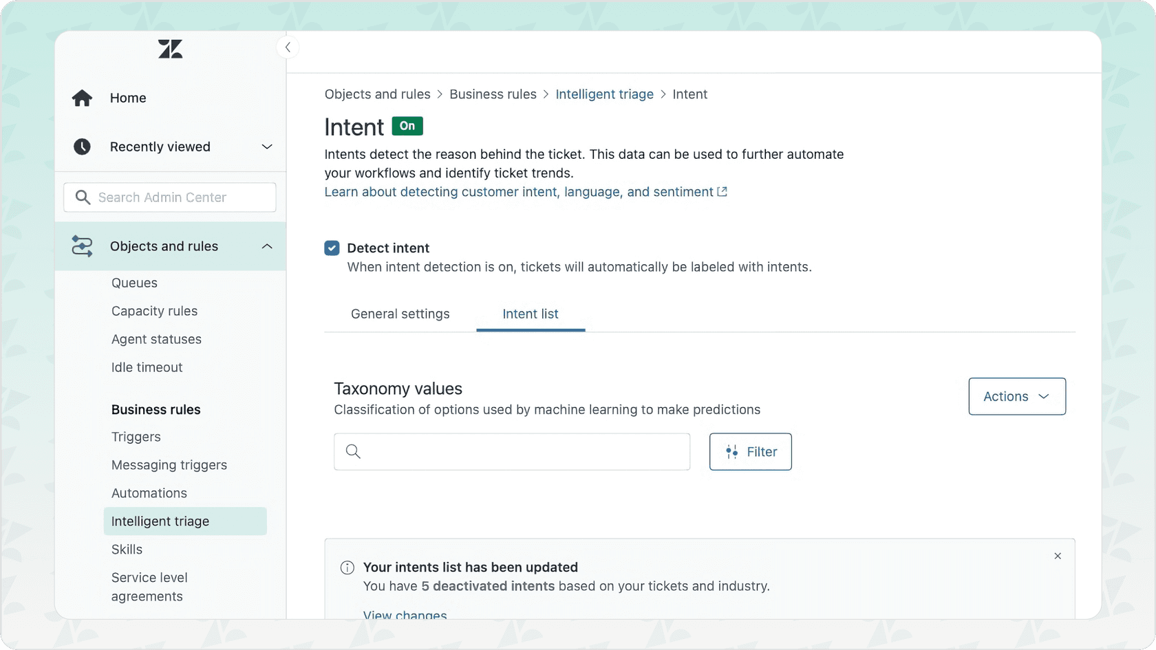 - Automation actions: This is what makes the system automate things like tagging tickets, sending them to the right person, or even closing simple requests automatically.