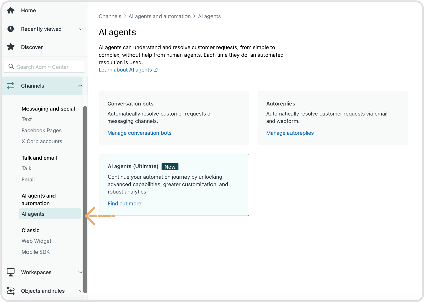 To activate an answer bot, log into your Zendesk account as an admin, then navigate to the Admin Center by clicking the gear icon in the sidebar. From there, select Channels, and then click Bots and Automations. This is where you can manage the answer bot’s setup and customization.