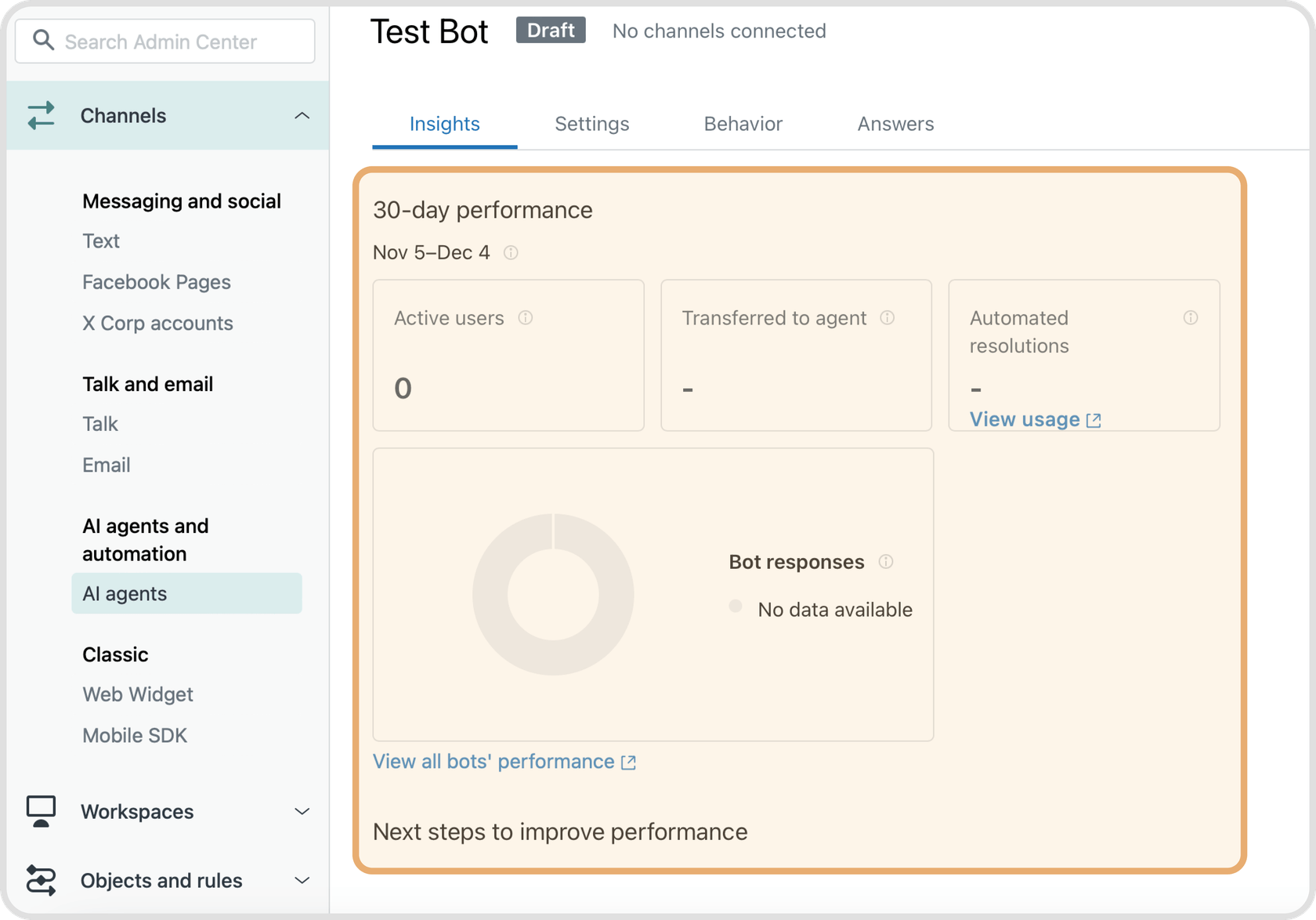 For example, a low resolution rate might indicate that the bot needs better knowledge base content or more precise triggers. Low CTR could suggest that article titles or summaries aren’t resonating with customers, requiring adjustments. Continuously refine your setup based on data-driven insights to optimize the bot’s performance.