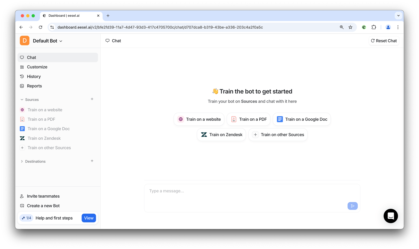 Destinations are where your eesel AI will chat with users – like your web page or Teams.