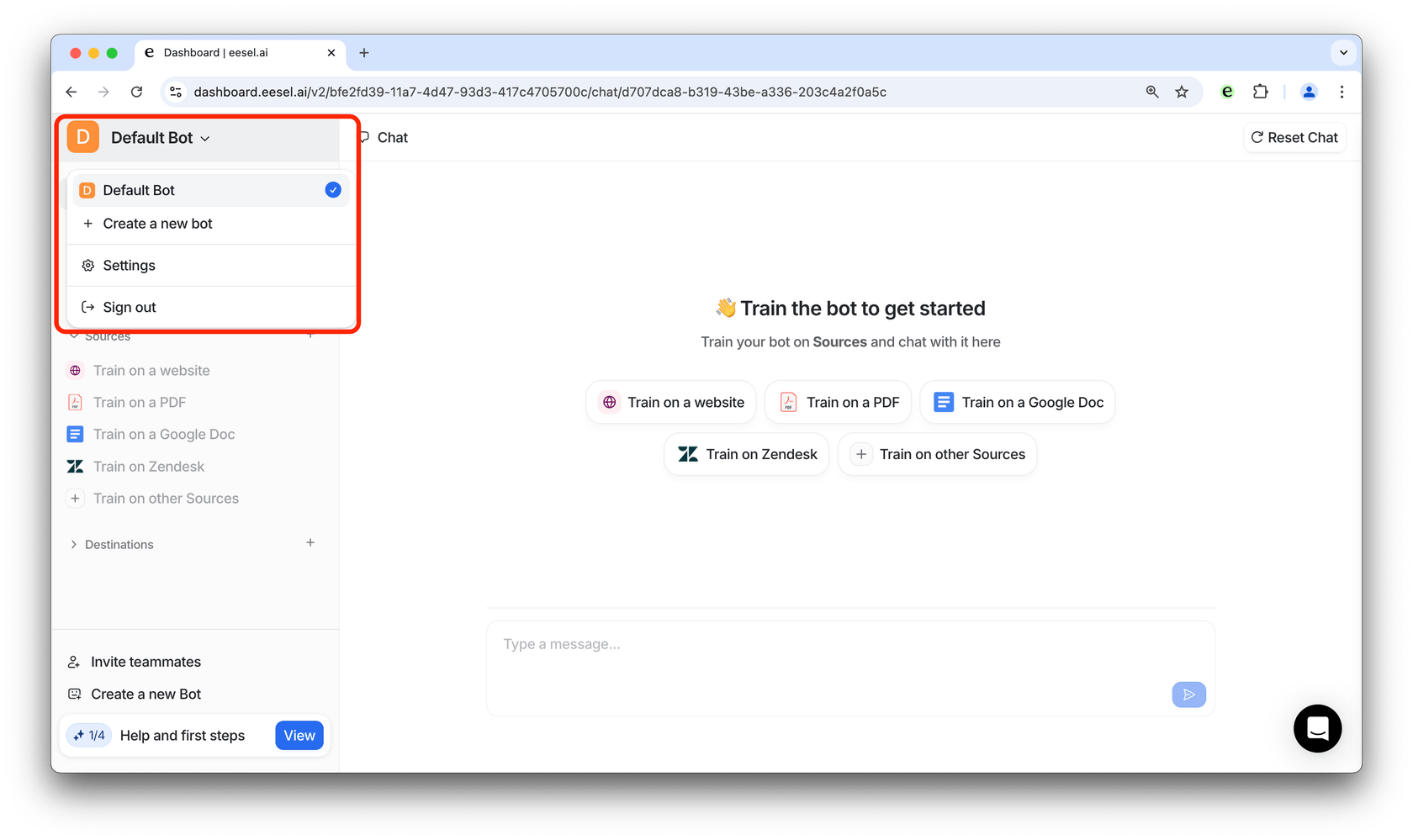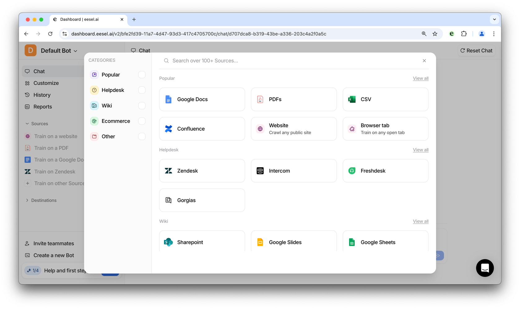 Sources are what you will use to train eesel AI on, like Google Docs, your help center, or past Zendesk tickets.