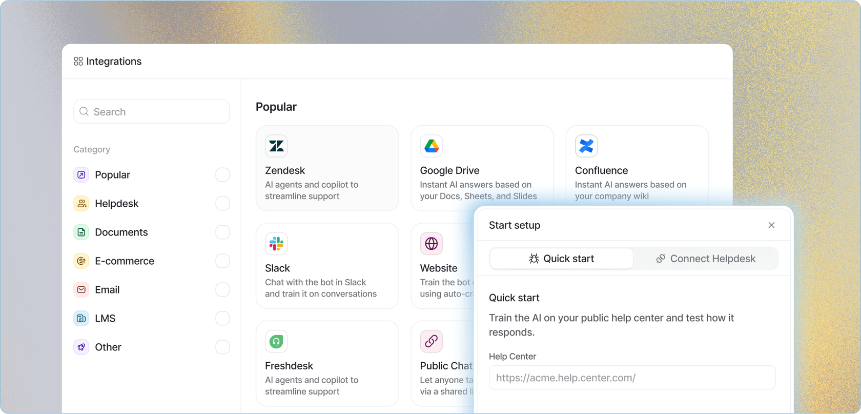 Werfen Sie einen Blick darauf, wie eesel AI nahtlos in Ihre bestehenden Arbeitsabläufe und Tools integriert wird, indem es über Ihr Unternehmen, Ihre Arbeitsweise lernt und als Ihr neuer Teamkollege mitwirkt. Keine schwere Arbeit erforderlich.