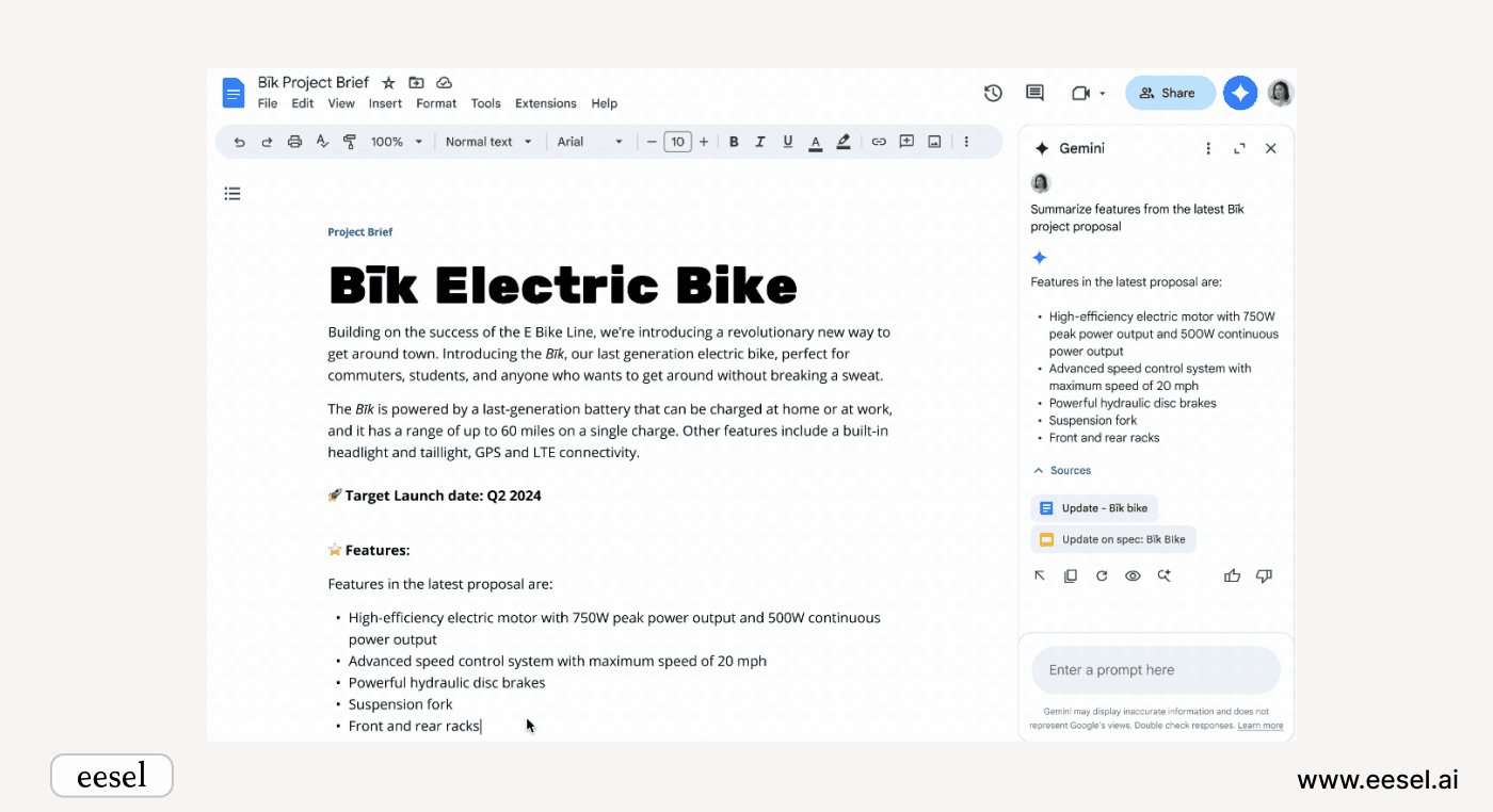 If you’re looking for a tailored AI solution that goes beyond the basics, and works for individuals and teams across platforms, check us out! At eesel AI we have a lot to offer those seeking an AI solution to improving their Google Docs and Google Drive workflow.
