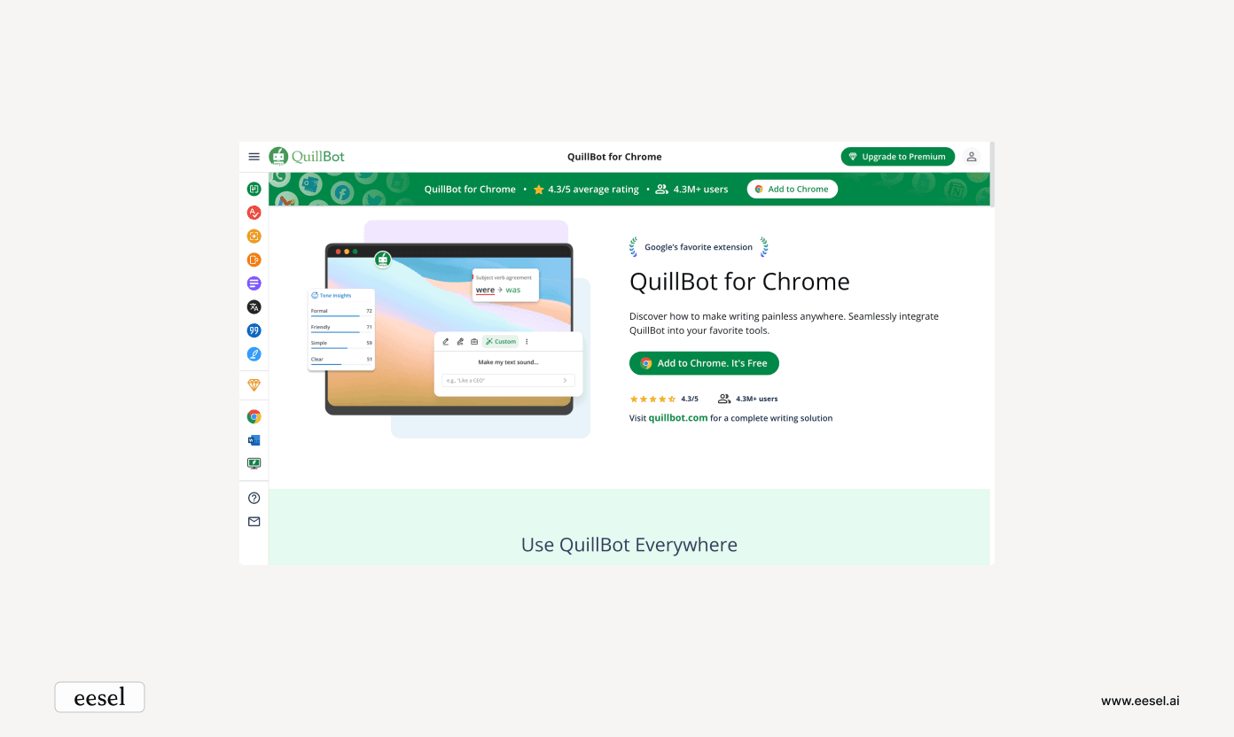 QuillBot est votre acolyte d'écriture super-intelligent qui vous aide à nettoyer votre écriture, à reformuler des phrases et à générer des idées – tout en un seul endroit. Avec l'extension Chrome de QuillBot, vous pouvez peaufiner tout ce que vous écrivez, des Google Docs aux e-mails en passant par les publications sur les réseaux sociaux.