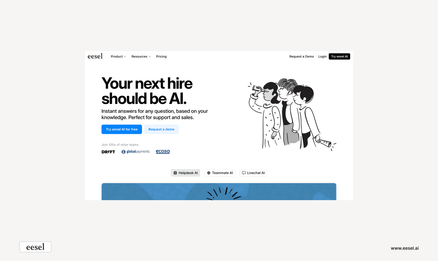 1. eesel AI – le meilleur pour centraliser les connaissances et garder les équipes sur la bonne voie