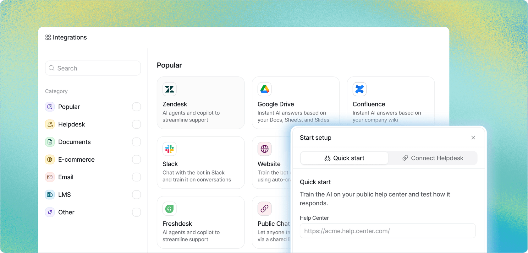 From Confluence and Google Docs to PDFs and Notion pages, you can train the AI on any content.