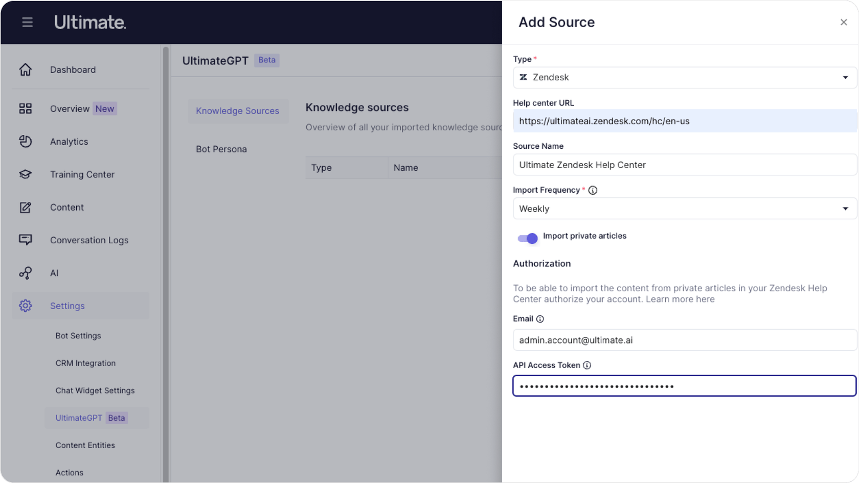 Desempenho do Ultimate AI com Zendesk